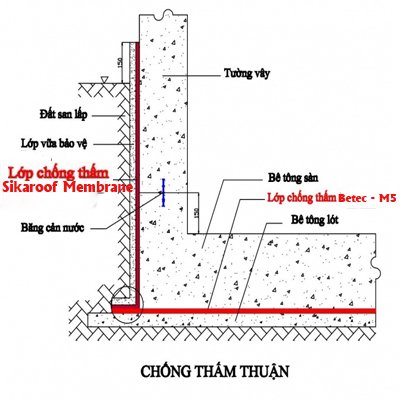 – Lớp vật liệu chống thấm bên dưới lòng đất cho các bề mặt bê tông và vữa trát.