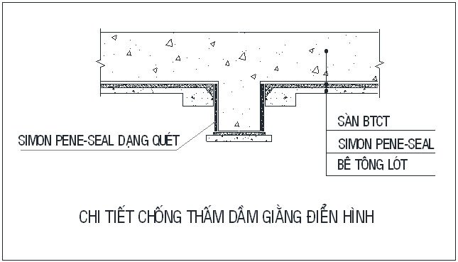 Bản vẽ chống thấm dầm giằng điển hình bằng Vinkems Simon Pene-Seal