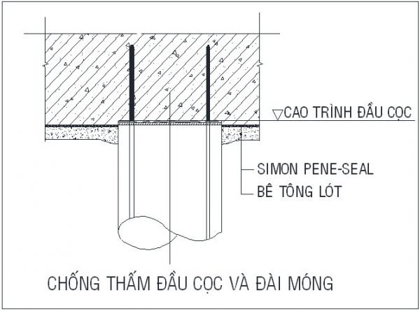 Chống thấm đầu cọc và đài móng bằng Vinkems Simon Pene-Seal