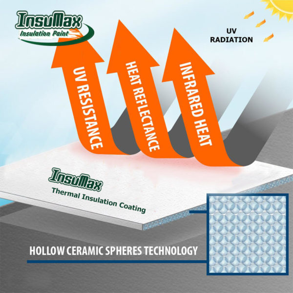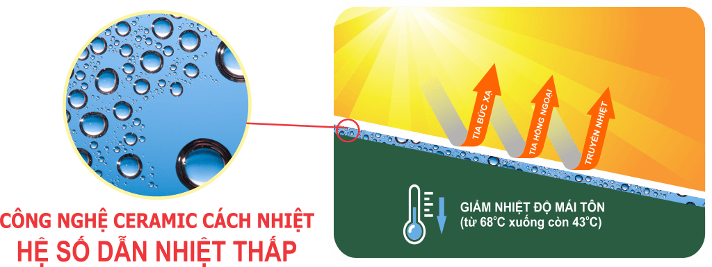 - Cấu trúc màng sơn gồm các hạt Ceramic tròn rỗng: phản xạ đến 90% nhiệt độ do bức xạ gây ra.