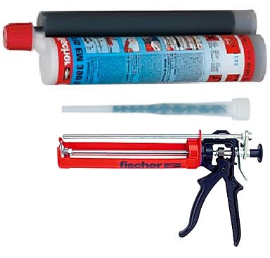 Hóa chất cấy thép Fischer Fis EM 390 S là hỗn hợp 2 thành phần gồm nhựa gốc Epoxy và chất làm cứng sẽ được hòa trộn hoàn toàn vào nhau thông qua vòi trộn tĩnh, bơm trực tiếp vào lỗ khoan