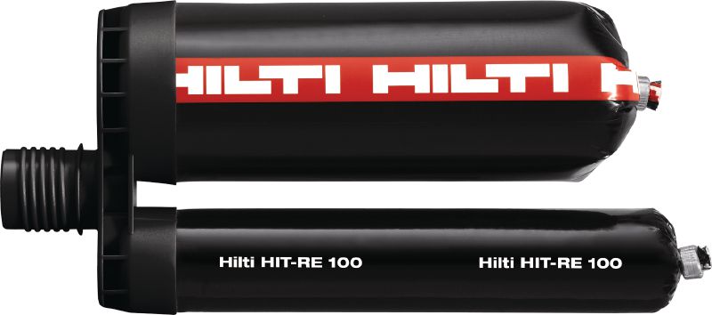 Keo cấy thép Hilti HIT RE 100 là loại hóa chất cấy thép được hãng HILTI của Germany sản xuất theo tiêu chuẩn Châu Âu. Dạng Epoxy không mùi, gồm 2 thành phần riêng biệt đóng trong bao gói nhựa dẻo.