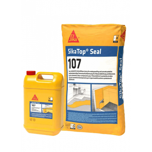 Vữa chống thấm cho độ bám dính cao, khả năng che phủ lớn, lớp chống thấm có độ đàn hồi nhẹ, chịu được áp lực nước mà không ngấm nước. Sikatop seal 107 dùng chống thấm đàn hồi bên trong và bên ngoài nhà, trong công tác sửa chữa và bảo vệ chống sương giá, các tác nhân khử băng. Sika top 107 sau khi chống thấm trong lòng bể chứa nước đã được LAS-XD13 chứng nhận an toàn đạt tiêu chuẩn chứa nước cấp dùng trong sinh hoạt.