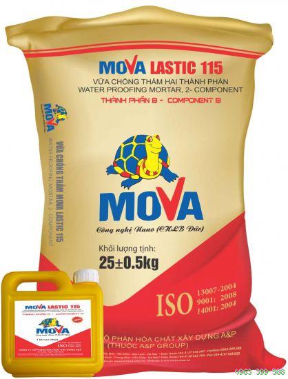 Mova Lastic 115 ( A+B) là vữa chống thấm gốc xi măng Polymer cải tiến gồm 2 thành phần được thi công lên bề mặt vữa và bê tông để ngăn sự thấm nước.
