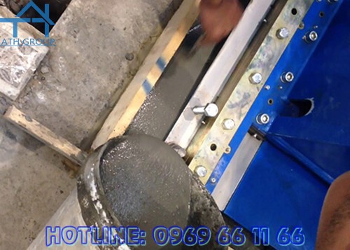 - Làm máng để đổ vữa dọc theo mặt đổ vữa vào với chiều cao ít nhất là 200 mm tạo hình phễu để đổ